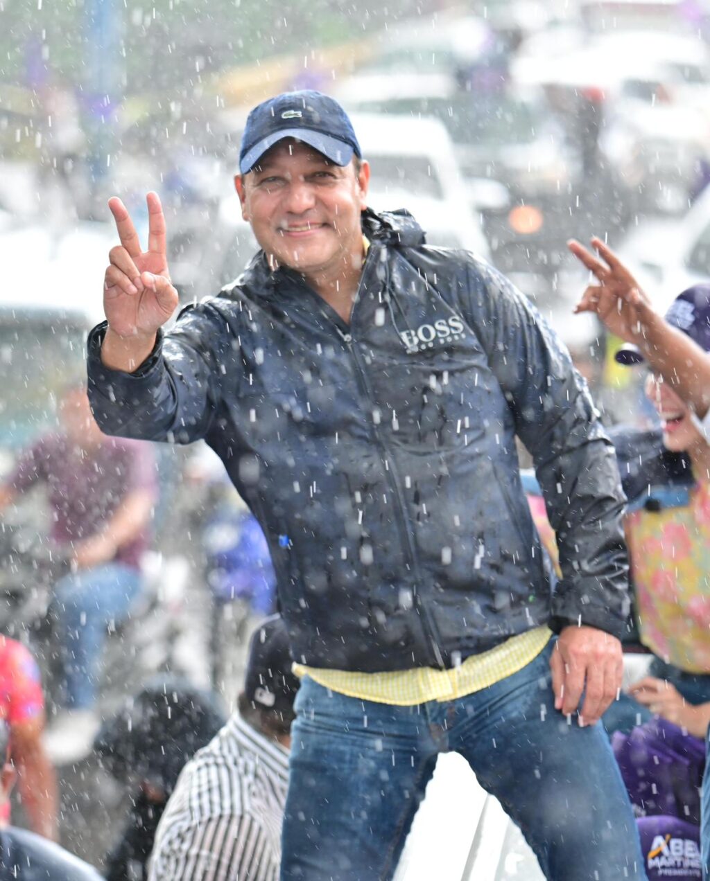 Bajo un fuerte aguacero, Abel Martínez se abrazó al pueblo de San Francisco de Macorís, que desbordaron kilómetros de calles reflejando alegría y entusiasmo a pesar de la fuerte lluvia.