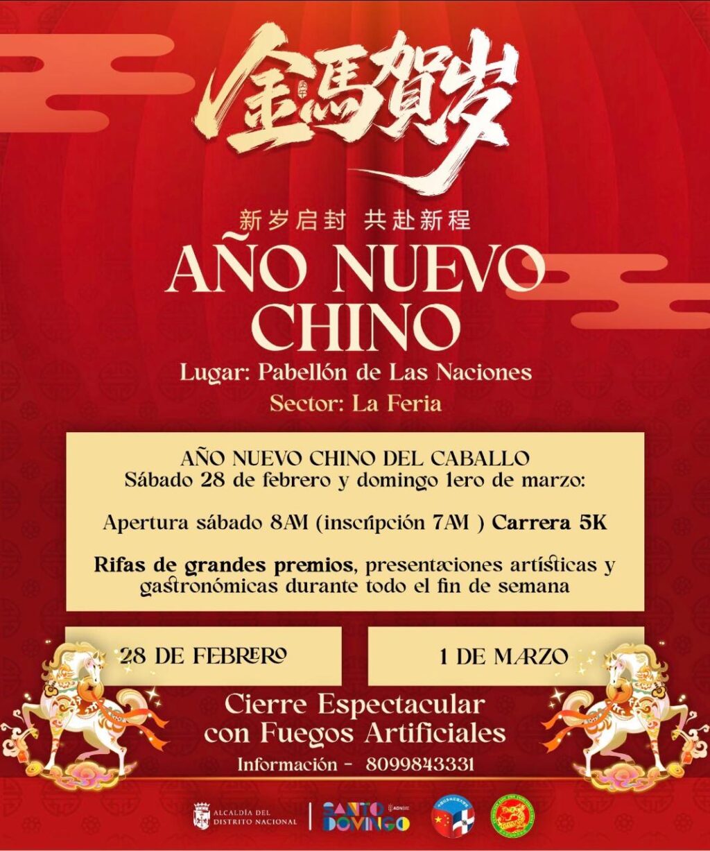 Santo Domingo, R.D. – La Fundación Jade Pro-Comunidad China, de la mano de la Alcaldía del Distrito Nacional y la Embajada de la República Popular China, invita a toda la ciudadanía a celebrar el tradicional Festival de la Primavera, con motivo del Año Nuevo Chino – Año del Caballo, los días 28 de febrero y 1 de marzo.