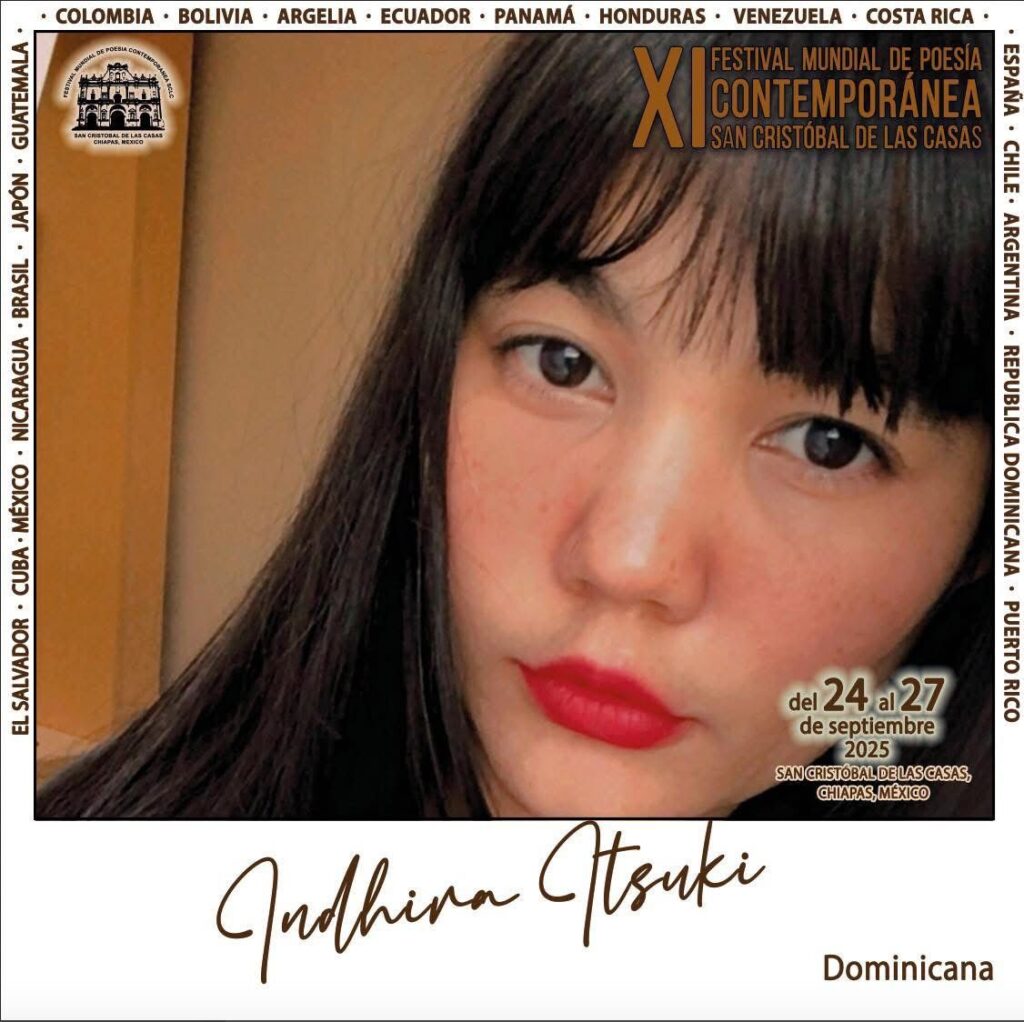San Cristóbal de las Casas, Chiapas, México. – La poeta dominicana Indhira Itsuki Roca participó en el Festival Mundial de Poesía Contemporánea, el cual cumplió 11 años de historia, el mismo se llevó a cabo del 24 al 27 de septiembre en esta ciudad, bajo la organización de la escritora y gestora cultural Chary Gumeta.