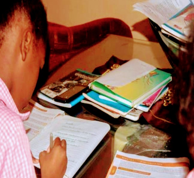Estudiantes de Manganagua, de diferentes grados, comparten los celulares de sus madres para poder estudiar a distancia. ( Diario Libre/Massiel Beco.)