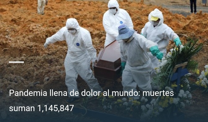 La pandemia de nuevo coronavirus ha provocado al menos 1.145.847 muertos en el mundo desde que la oficina de la OMS en China dio cuenta de la aparición del nuevo coronavirus en diciembre, según un balance establecido por AFP este sábado a las 11:00 am hora local en base a fuentes oficiales.
