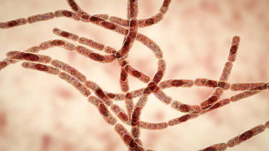 Bacteria Bacillus anthracis, the causative agent of anthrax disease, 3D illustration